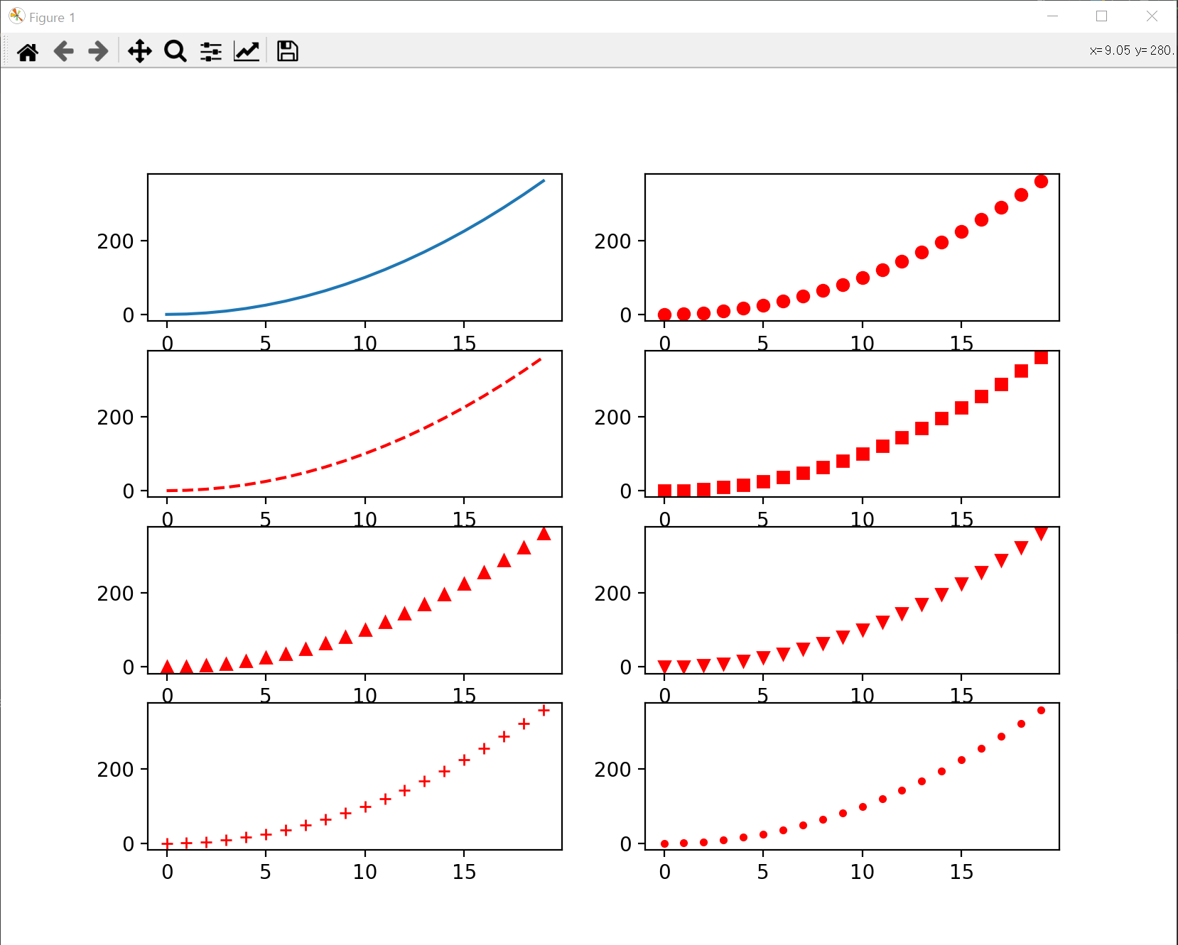matplotlib의 pyplot 모듈은 매트랩과 비슷한 형태로 그래프를 그리는 기능을 제공합니다. 참고로 앞장에서 그린 그래프에는 pyplot 모듈을 사용했습니다. pyplot 모듈만 제대로 익혀도 왠만한 데이터는 모두 효과적으로 도식화할 수 있습니다.