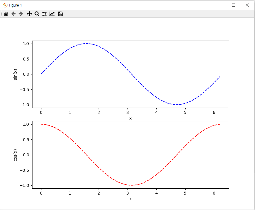 한 화면에 여러 개의 그래프를 그리려면 figure 함수를 통해 Figure 객체를 먼저 만든 후 add_subplot 메서드를 통해 그리려는 그래프 개수만큼 subplot을 만들면 됩니다.