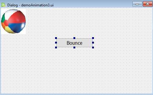 - Set the objectName property of the Push Button widget to pushButtonBounce and that of the Label widget to labelPic.