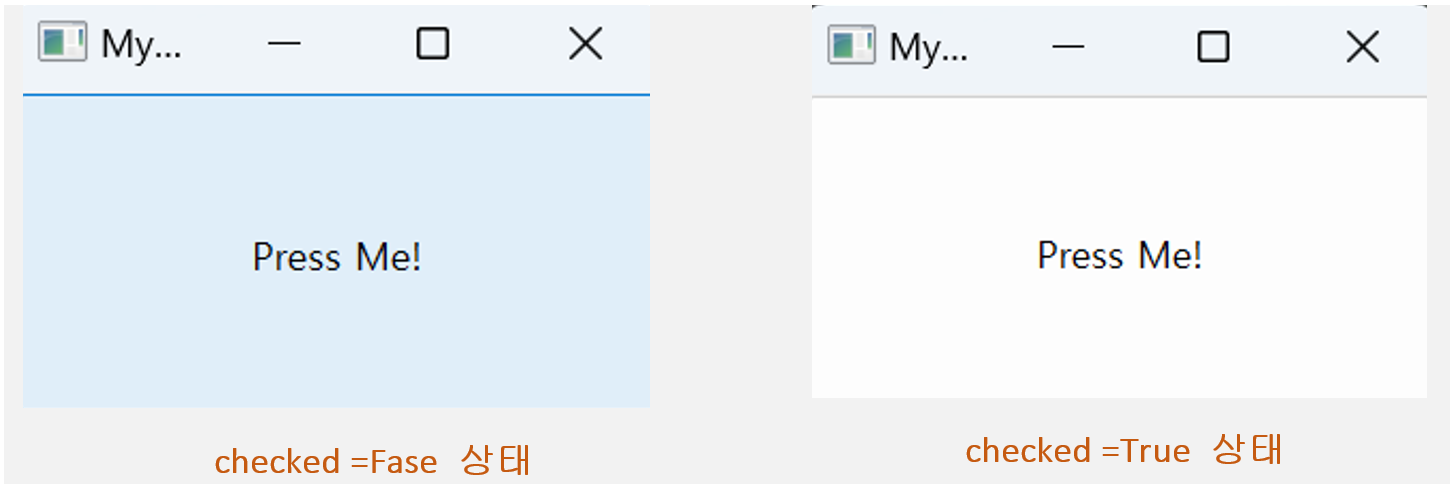 - 기본 signal이 아니므로 설정 필요( 예 setCheckable(True) )