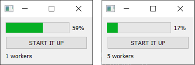 스레드를 사용하여 장기 실행 작업을 수행하는 경우 사용자에게 작업 진행 상황을 알려야 합니다. 이를 수행하는 일반적인 방법은 왼쪽에서 오른쪽으로 막대가 채워져 작업이 얼마나 완료되었는지를 나타내는 진행률 표시줄을 사용자에게 표시하는 것입니다. 작업에 대한 진행률 표시줄을 표시하려면 작업자로부터 현재 진행률 상태를 내보내야 합니다.
