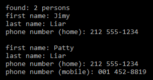 Finally, we get this result from processing the person XML file to find the people whose last name is Liar: