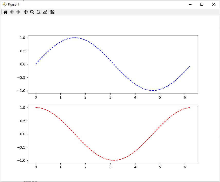 한 화면에 여러 개의 그래프를 그리려면 figure 함수를 통해 Figure 객체를 먼저 만든 후 add_subplot 메서드를 통해 그리려는 그래프 개수만큼 subplot을 만들면 됩니다.