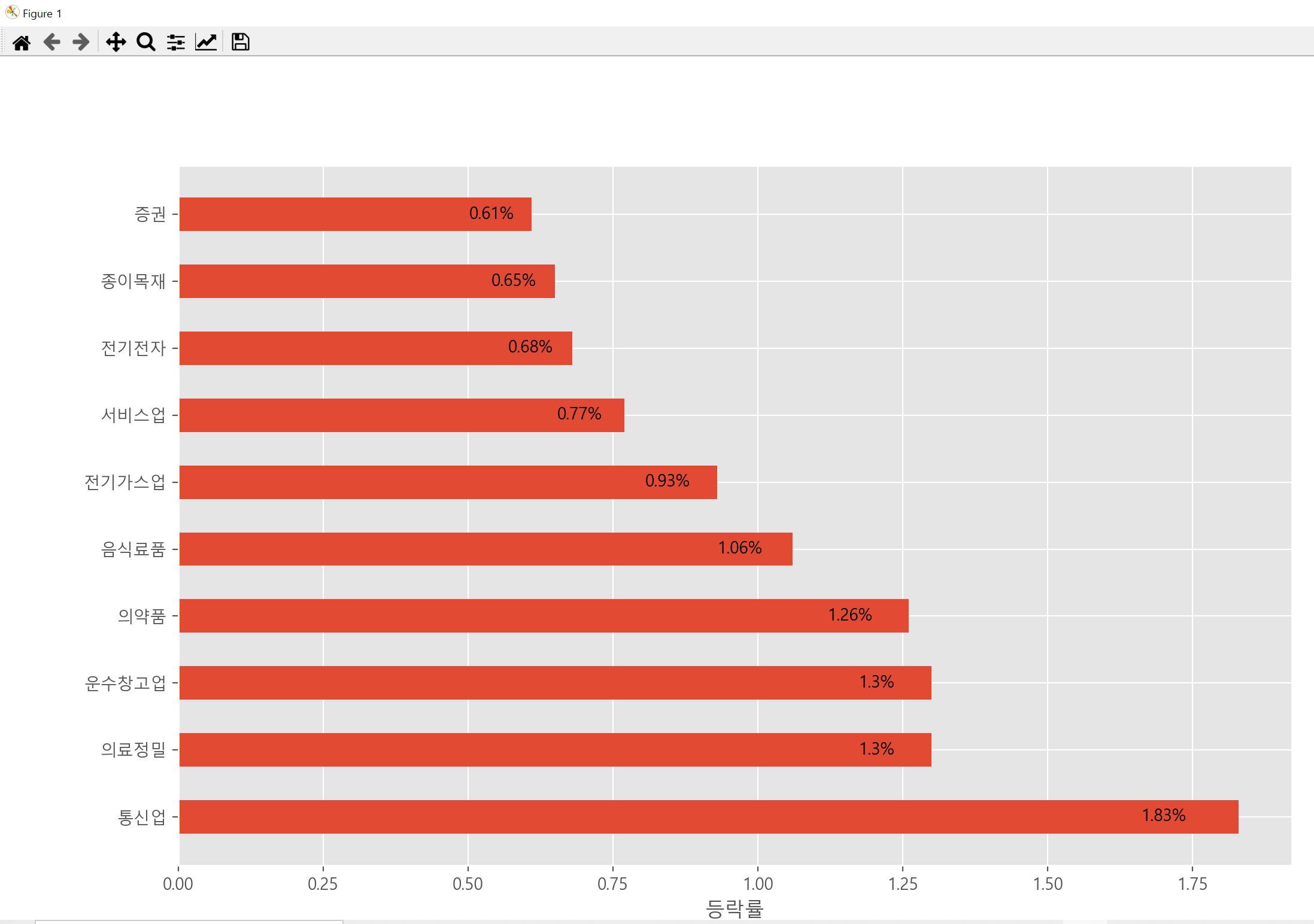plt.xlabel('등락률')