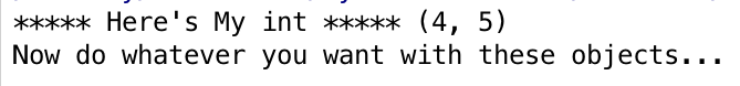 print("***** Here's My int *****", args)