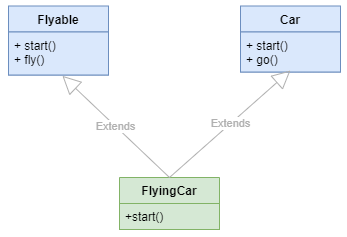 셋째, Car 및 Flyable 클래스 모두에서 상속되는 FlyingCar를 정의합니다.