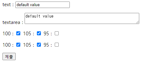 여러줄 텍스트 type - <textarea cols="넓이" rows="줄" name="이름1" >default value</textarea>