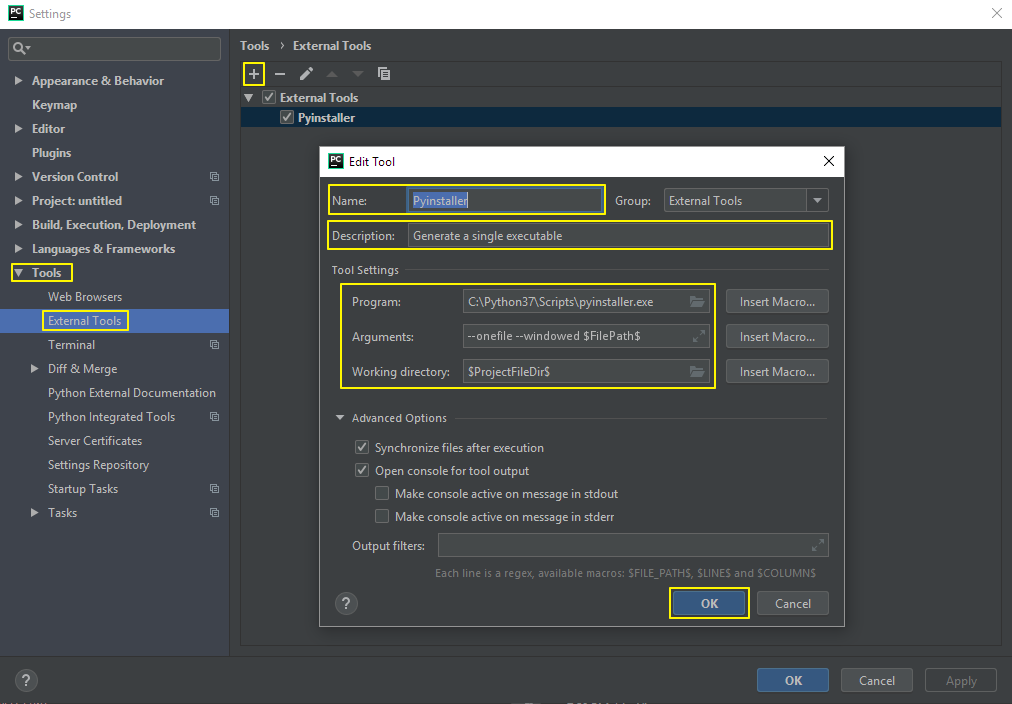 [ PyCharm에서 Pyinstaller 연결 생성 ]