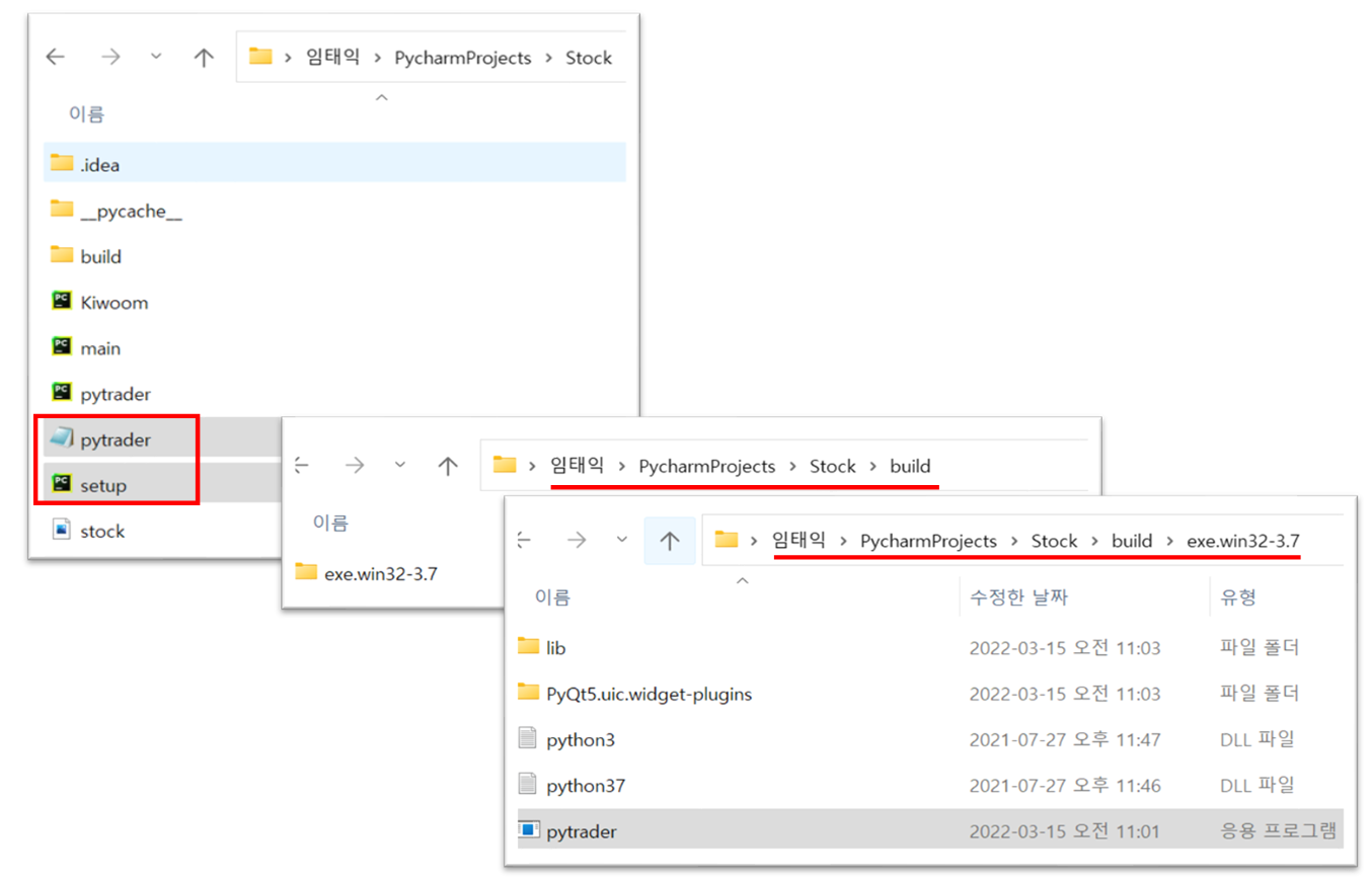 exe = [Executable("pytrader.py")] # exe파일을 생성할 대상 파일