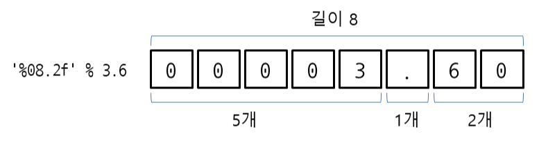 - '%0개수.자릿수f' % 숫자