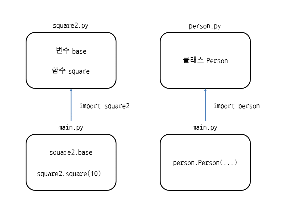 패키지는 특정 기능과 관련된 여러 모듈을 묶은 것인데, 패키지에 들어있는 모듈도 import를 사용하여 가져옵니다.