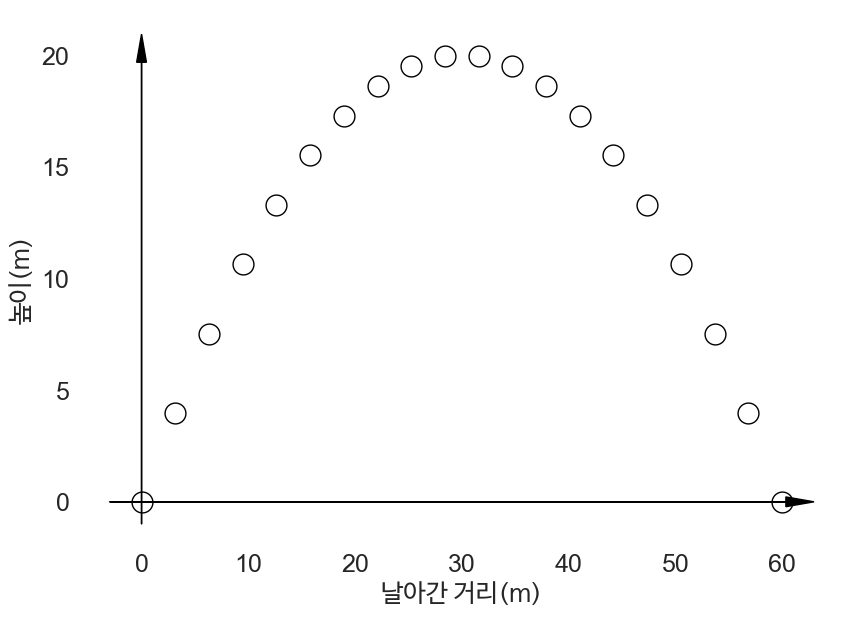 plt.xlabel('날아간 거리(m)', fontproperties=fontprop)