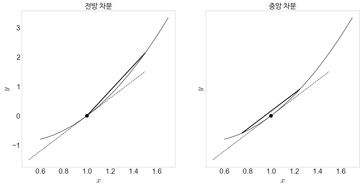 - 직접 미분을 사용하면 위 결과를 이용하여 함수를 선언하고 그대로 사용