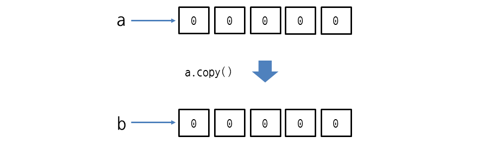 리스트 a와 b를 완전히 두 개로 만들려면 copy 메서드로 모든 요소를 복사해야 합니다.