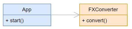App 클래스에는 FXconverter 클래스의 인스턴스를 사용하여 100 EUR를 USD로 변환하는 start() 메서드가 있습니다.