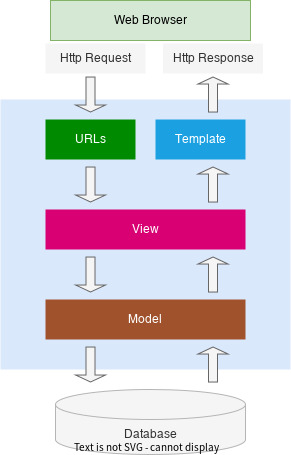 The main takeaway here is that in Django views determine what content is displayed on a given page while URLConfs determine where that content is going. The model contains the content from the database and the template provides styling for it.