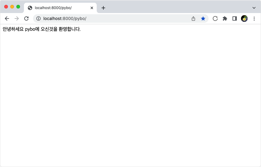 http://localhost:8000/pybo 페이지를 요청했을 때 "안녕하세요 pybo에 오신것을 환영합니다."라는 문자열을 출력하도록 만들어 보자.