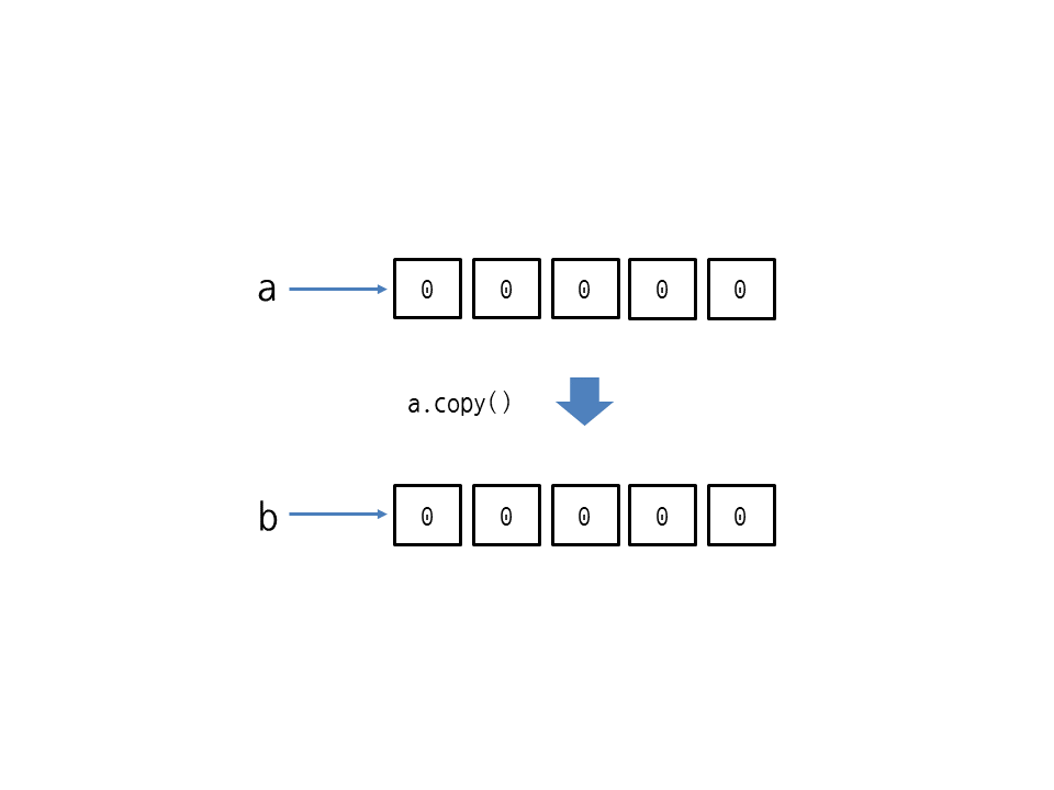 b = a.copy()와 같이 copy를 사용한 뒤 b에 할당해주면 리스트 a의 요소가 모두 b에 복사됩니다.