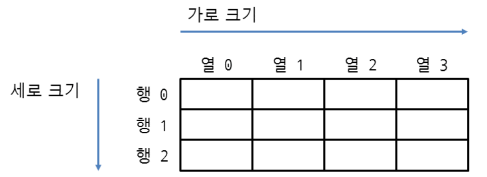 가로×세로 형태로 이루어져 있으며 행(row)과 열(column) 모두 0부터 시작합니다.