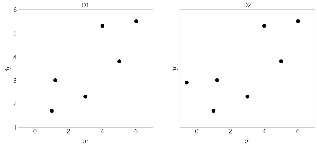 # D1은 앞서 예제로 들었던 최초 점 6개짜리 데이터입니다.