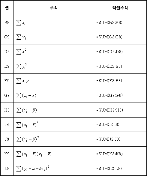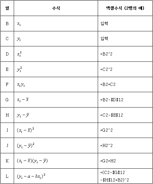 엑셀을 사용해서 최소자승법을 구할 때 가장 중요한 것은, 아주 잘 정리된 Sheet 이다.