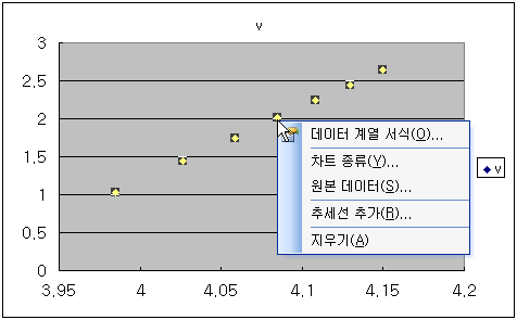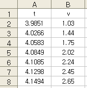 아래의 그림은, 자유낙하하는 물체를 특정시간에 속도를 측정하여 기록한 데이터 테이블을 이용하여,
