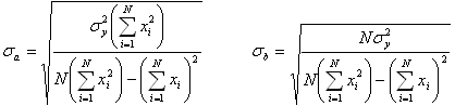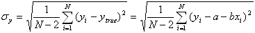 a,b의 표준편차는 종속변수 σy의 표준편차로부터 유도되며, 다음과 같다.