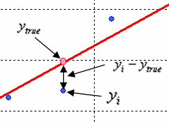 만약 데이터가 선형적인 관계라면, ytrue는 보통 ytrue=a+bx 로 표현할 수 있고, 오차는 다음과 같다.