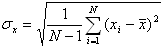 독립변수 x 의 평균값을 이용한 표준편차 σx의 공식은 다음과 같다.
