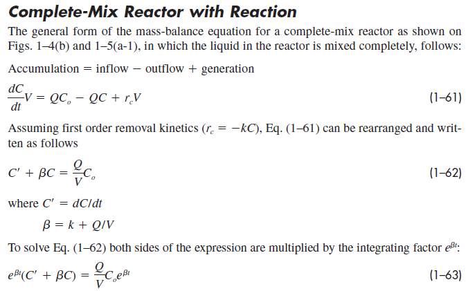 | Complete-mix without recycle | Aerated lagoons, aerobic sludge digestion, anaerobic digestion |