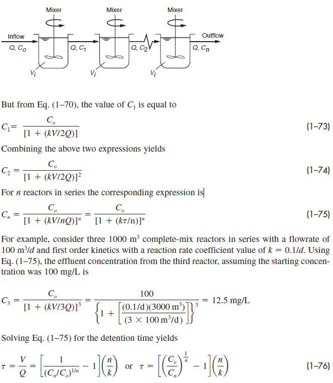 | Complete-mix reactors in series | Lagoon treatment systems, used to simulate nonideal flow in plug flow reactors |