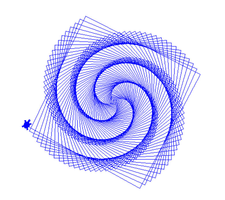 t.forward(i) # i만큼 앞으로 이동. 반복할 때마다 선이 길어짐