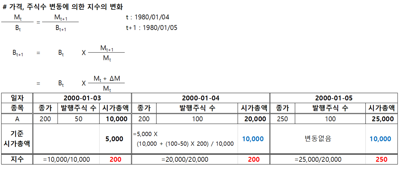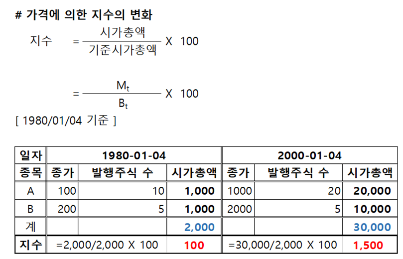 지수_1 = 당일비교시가총액 / 당일기준시가총액